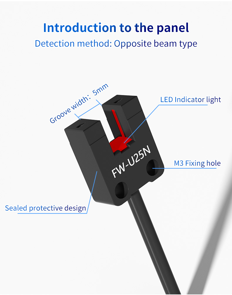 मेटा विवरण: 5 मिमी डिटेक्शन चौड़ाई के साथ FW25 सीरीज यू-ग्रूव फोटोइलेक्ट्रिक सेंसर की खोज करें। मूल पहचान, घूर्णी गति की निगरानी और गाइड रेल नियंत्रण के लिए एक बुद्धिमान चिप, अभिन्न आवास और बहुमुखी शैलियों की विशेषता। मजबूत औद्योगिक स्वचालन अनुप्रयोगों के लिए आदर्श।
