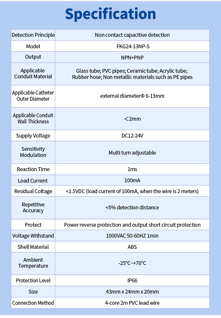 FKG24-13NP-S निम्न स्तर का पता लगाने के संधारित्र ट्यूब स्तर सेंसर कैपेसिटिव सिद्धांत, आसानी से पाइप सामग्री से प्रभावित नहीं