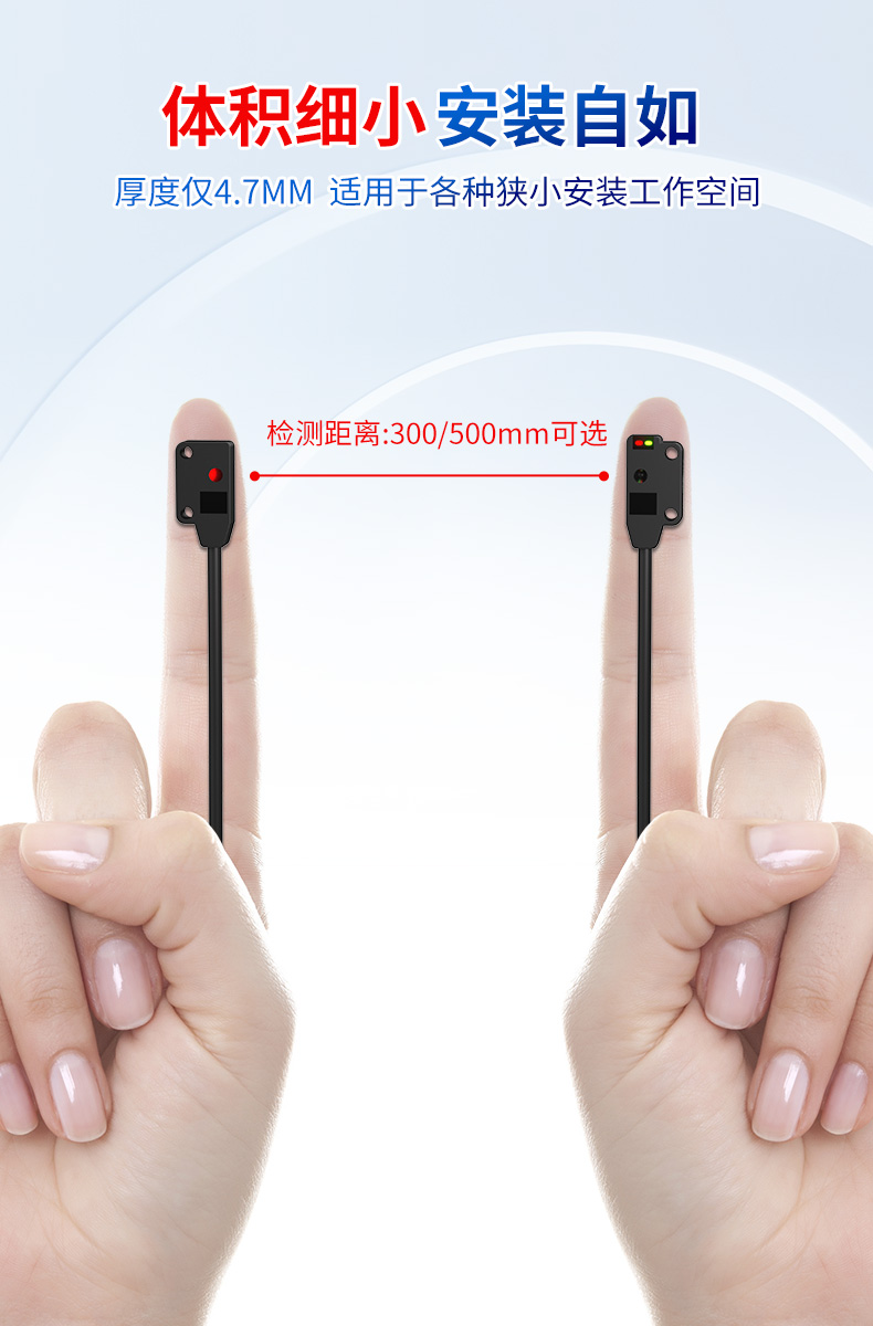 सबसे पहले, FGNH04-30NFT श्रृंखला में सिर्फ 4.7 मिमी की मोटाई है। यह अल्ट्रा-पतली डिज़ाइन स्थापना लचीलेपन का विस्तार करता है। जहां पारंपरिक सेंसर अक्सर सीमित उपकरण स्थानों में फिट होने के लिए संघर्ष करते हैं, इस उत्पाद को समग्र यांत्रिक संरचनाओं से समझौता किए बिना विभिन्न कॉम्पैक्ट वातावरण में मूल रूप से एकीकृत किया जा सकता है। यह विशेष रूप से इलेक्ट्रॉनिक्स असेंबली लाइनों पर एलईडी जैसे पिन का पता लगाने वाले सेंसर अनुप्रयोगों के लिए विशेष रूप से महत्वपूर्ण है - जहां पिन पिच मिनट है और कार्यक्षेत्र में बाधा है, सेंसर की आवश्यकता होती है जो प्रदर्शन का त्याग किए बिना "अदृश्य रूप से" स्थापित हो सकते हैं।