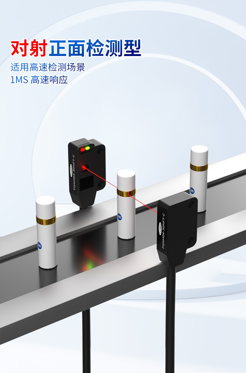 इसके अलावा, FGNH04-30NFT श्रृंखला उच्च गति वाले अनुप्रयोगों का व्यापक रूप से समर्थन करने के लिए कई डिटेक्शन मोड प्रदान करती है। इसके थ्रू-बीम साइड डिटेक्शन, थ्रू-बीम फ्रंट डिटेक्शन, और डिफ्यूज़ रिफ्लेक्शन फ्रंट डिटेक्शन वेरिएंट सभी 1Ms हाई-स्पीड प्रतिक्रिया प्रदान करते हैं, विविध बढ़ते पदों और डिटेक्शन आवश्यकताओं को पूरा करते हैं। विशेष रूप से पिन और माइक्रो-घटक निरीक्षण में, थ्रू-बीम प्रकार पिन की उपस्थिति को ठीक से निर्धारित करने के लिए क्रॉस-माउंटिंग के माध्यम से बाधा का पता लगाने में सक्षम बनाता है, जबकि डिफ्यूज़ रिफ्लेक्शन प्रकार एक रिसीवर के बिना क्लोज-रेंज डिटेक्शन को सूट करता है। यह मल्टी-मोड लचीलापन उपयोगकर्ताओं को अपनी विशिष्ट आवश्यकताओं के लिए इष्टतम कॉन्फ़िगरेशन का चयन करने की अनुमति देता है, जिससे सेंसर के स्थिर संचालन को सुनिश्चित किया जाता है कि उच्च गति वाली उत्पादन लाइनों पर एलईडी जैसे पिन का पता लगाना।