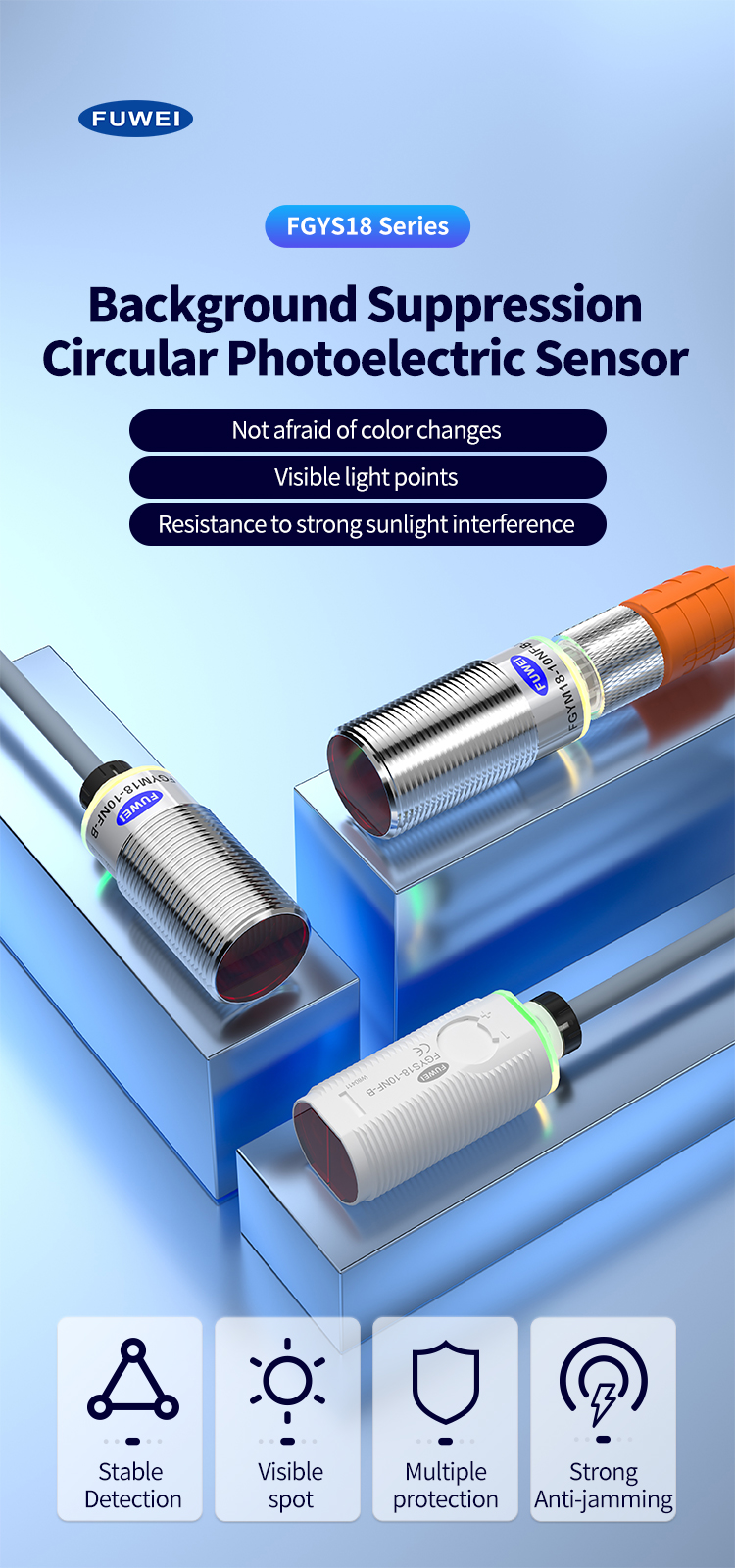 तेजी से औद्योगिक स्वचालन विकास के आज के युग में, सीएनसी मशीनें आधुनिक विनिर्माण में मुख्य उपकरण के रूप में काम करती हैं। उनकी सटीक, दक्षता और विश्वसनीयता सीधे उत्पादन की गुणवत्ता और लागत नियंत्रण को प्रभावित करती है। सीएनसी मशीनों की "बुद्धिमान आंखें" के रूप में, फोटोइलेक्ट्रिक सेंसर उच्च गति प्रसंस्करण के दौरान सटीक पता लगाने और स्थिर संचालन सुनिश्चित करते हैं।FGY18-10NU-B पृष्ठभूमि दमन परिपत्र फोटोइलेक्ट्रिक स्विचFuwei इलेक्ट्रॉनिक्स से एक उच्च-प्रदर्शन सेंसर है जो विशेष रूप से CNC मशीन टूल्स जैसे अनुप्रयोगों की मांग के लिए इंजीनियर है। यह लेख अपनी मुख्य विशेषताओं में देरी करता है और यह बताता है कि यह सीएनसी मशीन टूल सेक्टर के लिए तकनीकी सफलताओं को कैसे वितरित करता है।