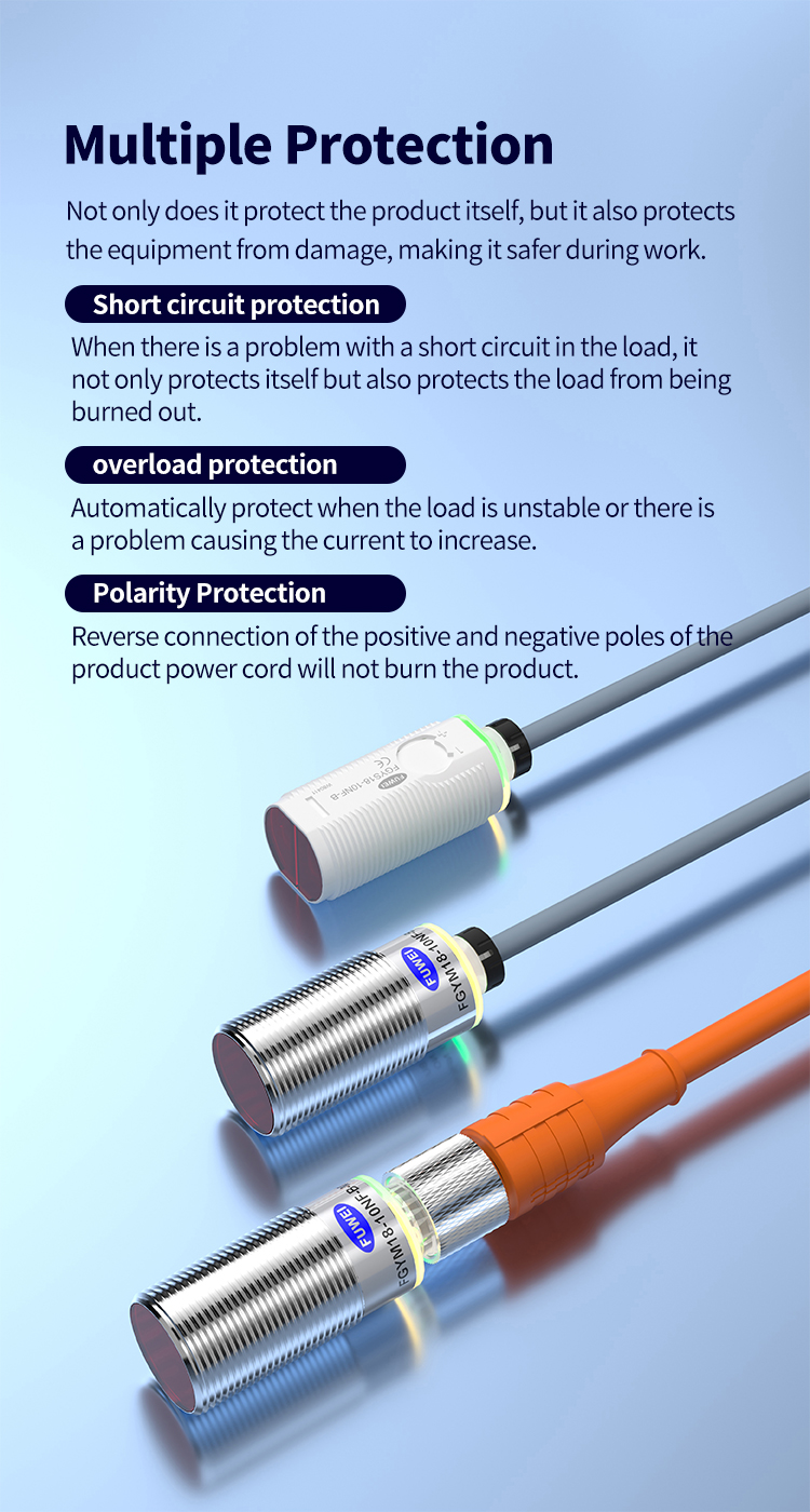 सीएनसी मशीन टूल ऑपरेटिंग वातावरण अक्सर कठोर होते हैं, वर्तमान उतार -चढ़ाव, असामान्य भार और वायरिंग त्रुटियों की लगातार घटनाओं के साथ। FGY18-10NU-B में कई सुरक्षात्मक कार्यों को शामिल किया गया है: