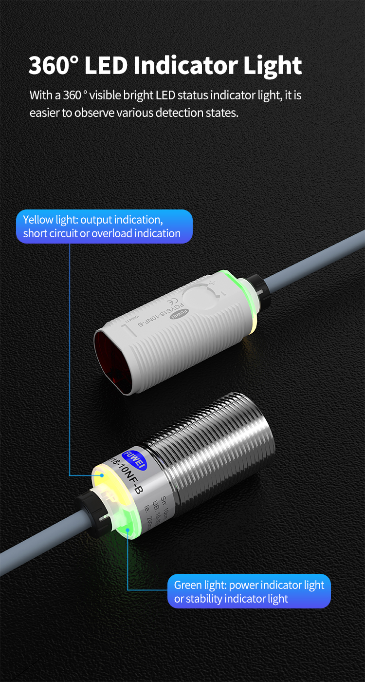 FGY18-10NU-B में एक उज्ज्वल, 360 ° दृश्यमान एलईडी स्थिति संकेतक है। ऑपरेटर आसानी से किसी भी कोण से सेंसर की परिचालन स्थिति की निगरानी कर सकते हैं। यह डिज़ाइन सीएनसी मशीन ऑपरेटरों के लिए वास्तविक समय की निगरानी और डिबगिंग की सुविधा प्रदान करता है, जो अस्पष्ट स्थिति संकेतक के कारण डाउनटाइम को कम करता है और उत्पादन दक्षता को बढ़ाता है।