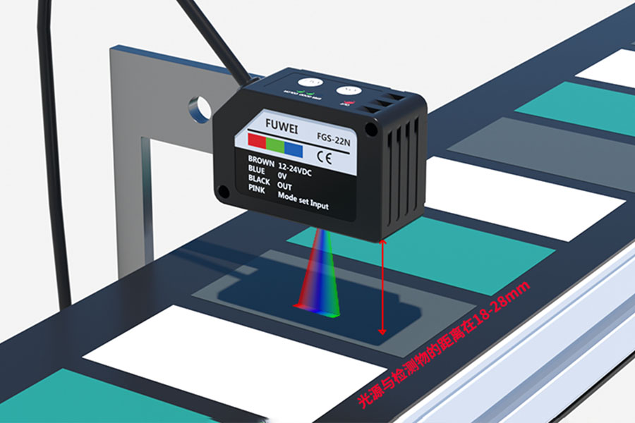 फ़ूवेई इलेक्ट्रॉनिक्स के FGS-22N श्रृंखला रंग मार्क सेंसर में अंतर्निहित स्वतंत्र लाल, हरे और नीले एलईडी प्रकाश स्रोत हैं। यह स्वचालित रूप से लक्ष्य वस्तु की सतह विशेषताओं के आधार पर इष्टतम एलईडी संयोजन का चयन करता है।