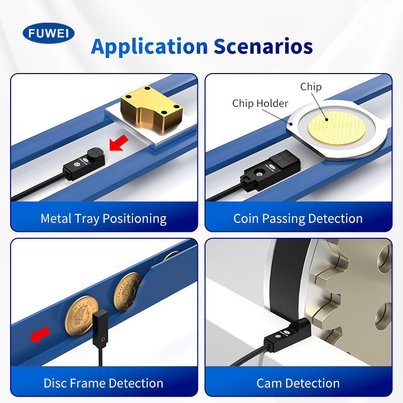 FSNS12D-04N का मजबूत फीचर सेट इसे उद्योगों के व्यापक स्पेक्ट्रम में असाधारण रूप से बहुमुखी बनाता है: मेटल ट्रे पोजिशनिंग: स्वचालित भंडारण और पुनर्प्राप्ति प्रणालियों (एएसआरएस) और एजीवी मार्गदर्शन के लिए सटीक स्थान का पता लगाना सुनिश्चित करता है। डिस्क फ्रेम डिटेक्शन: सेमीकंडक्टर विनिर्माण और इलेक्ट्रॉनिक्स असेंबली में डिस्क धारकों के लिए विश्वसनीय उपस्थिति संवेदन प्रदान करता है। सिक्का पासिंग डिटेक्शन: वेंडिंग मशीनों, गेमिंग आर्केड और वित्तीय में सटीक गिनती और सत्यापन सक्षम करता है कियोस्क.कैम डिटेक्शन: सटीक अनुक्रमिक नियंत्रण के लिए स्वचालित मशीनरी और रोटरी इंडेक्सर्स में कैम की स्थिति, गति और समय पर नज़र रखता है।