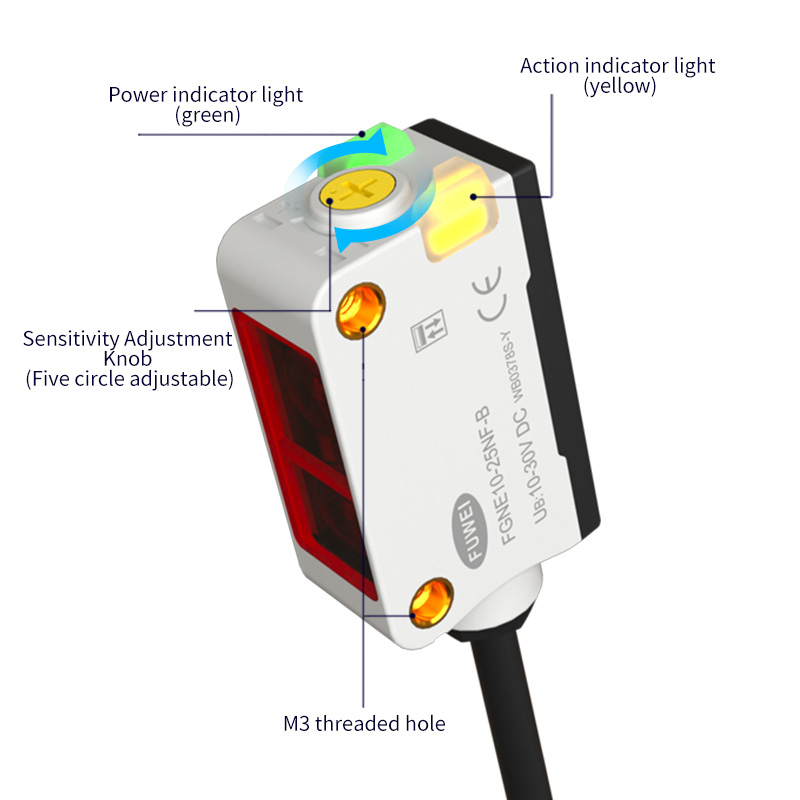 • स्क्वायर फोटोइलेक्ट्रिक सेंसर FGNE10-25NF-Bस्क्वायर फोटोइलेक्ट्रिक सेंसर FGNE10-25NF-B